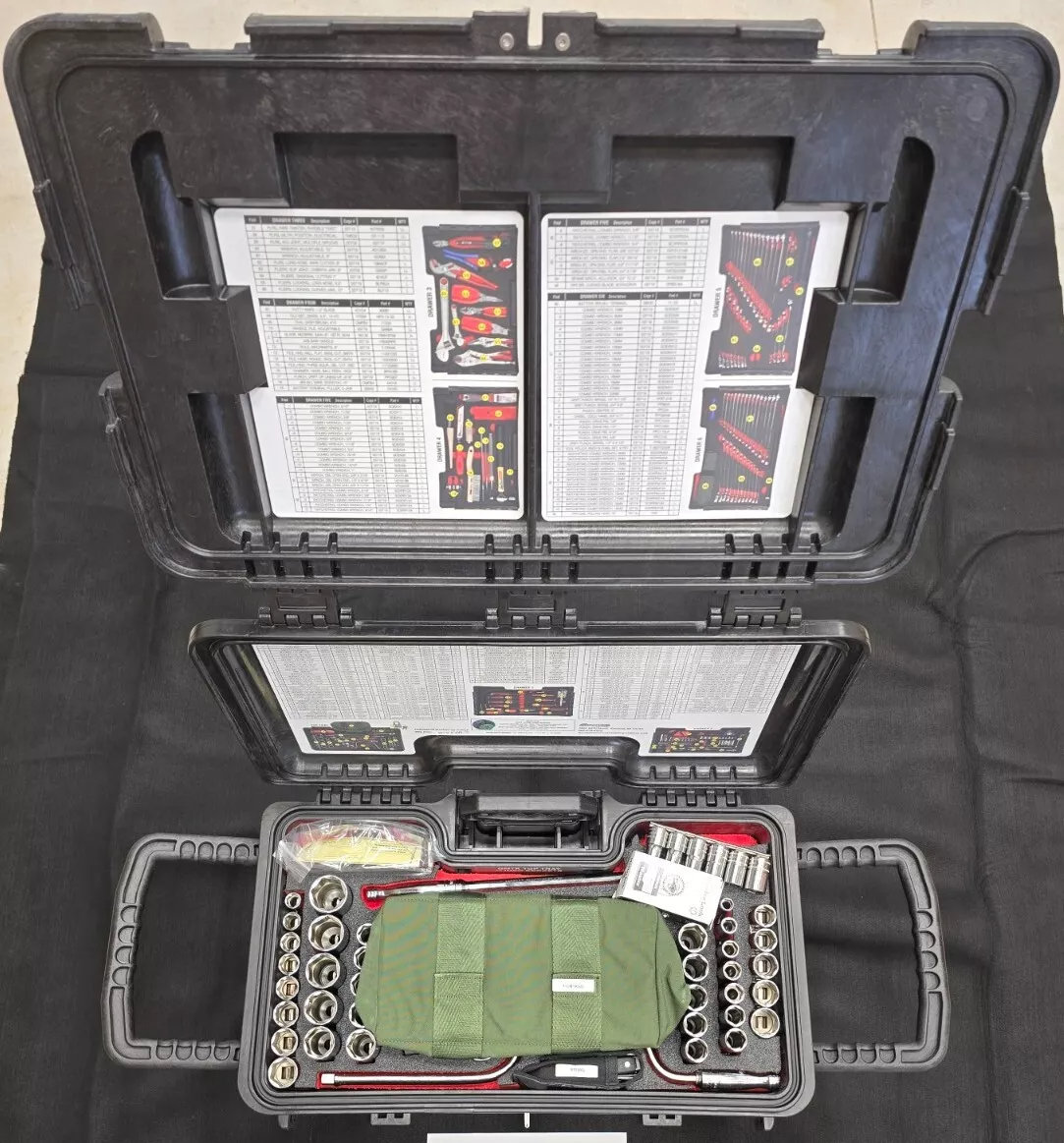 This is a brand new and complete Snap-On automotive / mechanics tool kit. It is produced by Snap-On and contains a huge assortment of their branded wrenches and tools along with a diverse offering from other high-end manufacturers as well. Everything comes securely stored in a Snap-On impact and moisture resistance rolling hard case with extendable carrying handles on the sides and a "trolley" handle on the back. Everything locks in place for safe and easy storage and each drawer has it's own foam-lined tray to keep everything neatly in place during transport!
