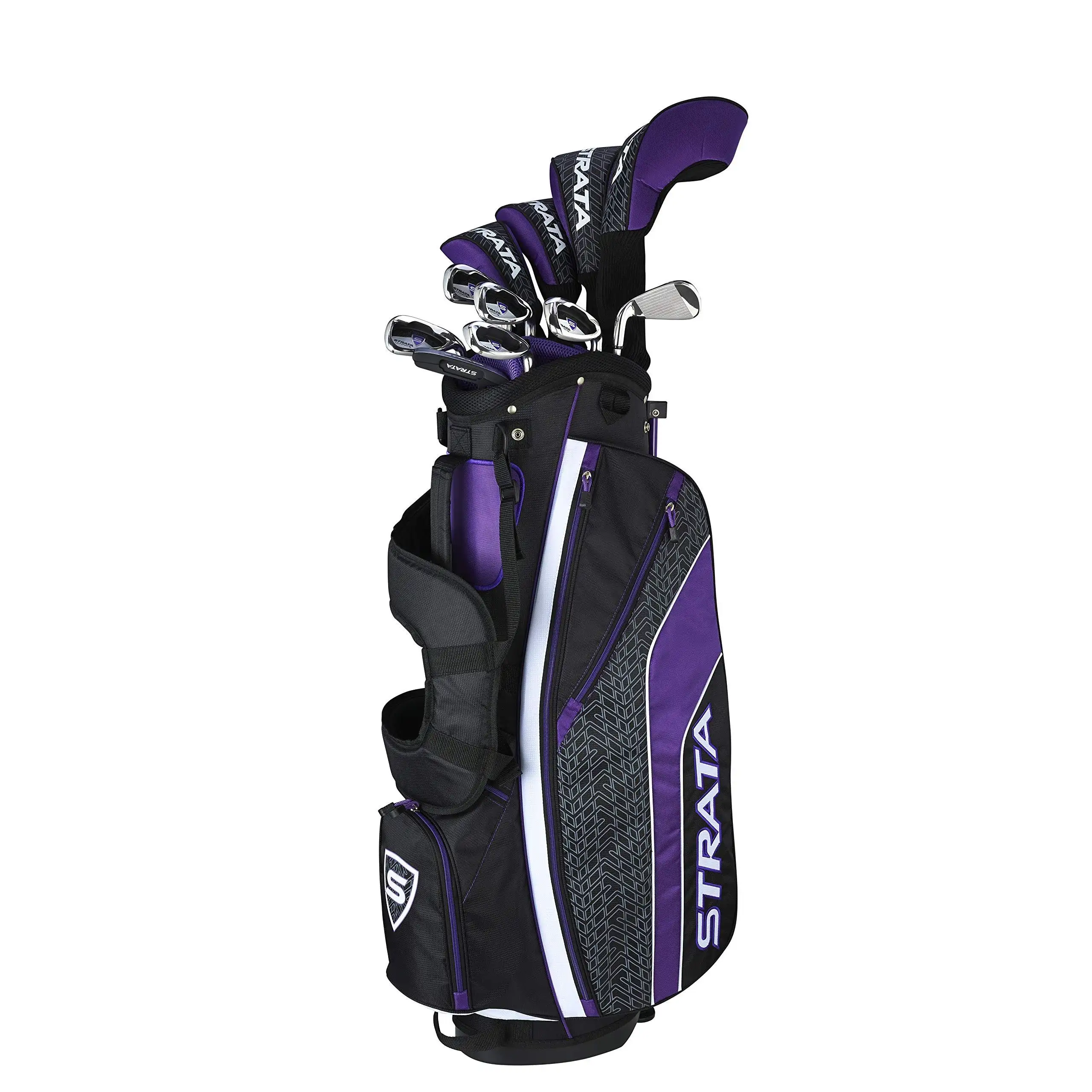 - Strata Ultimate is designed for ultimate distance and ultimate performance. This set includes: Driver 3 wood 4 & 5 Hybrid 6 to 9 Iron PW & SW Putter Stand Bag 4 Head covers