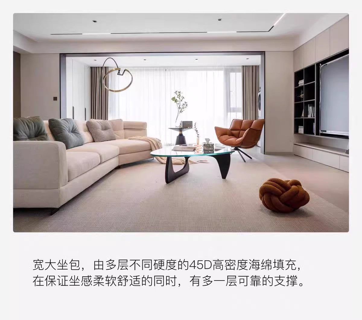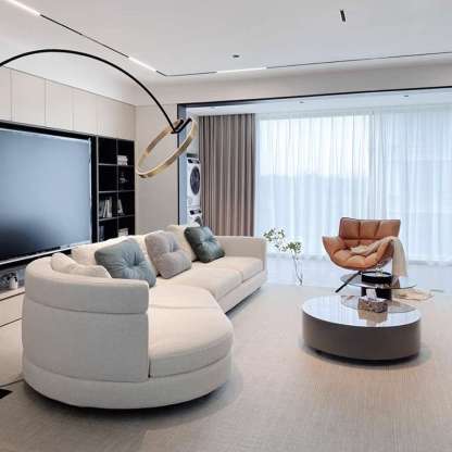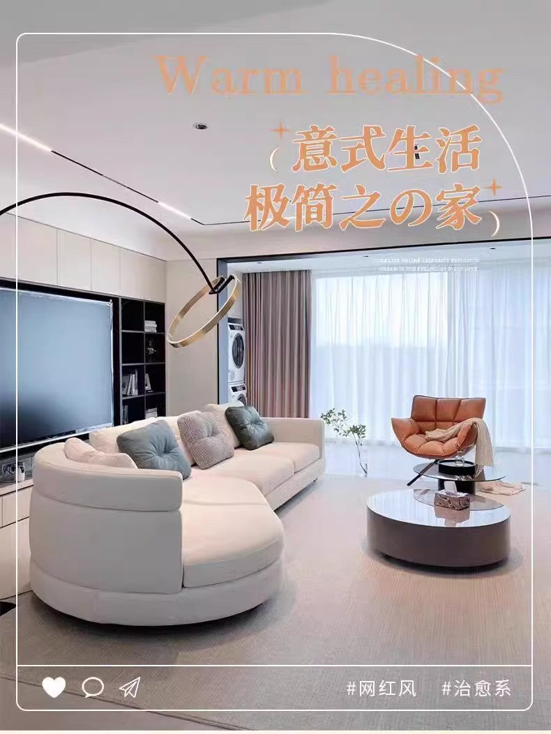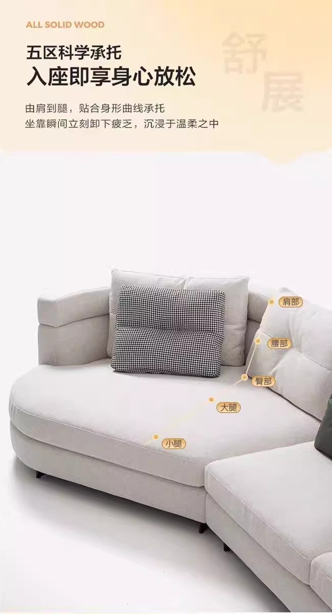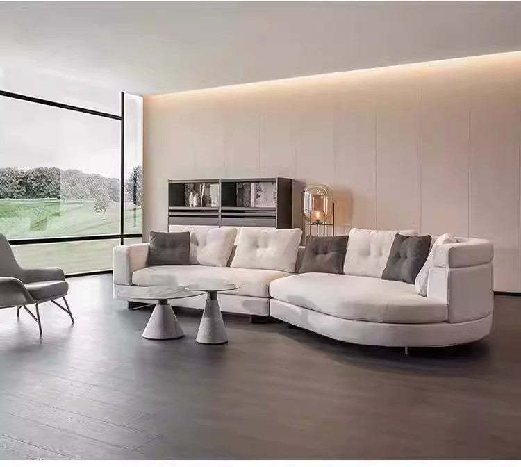 Designer Semi-Circular Arc Fabric Sofa for Small and Large Living Rooms, Italian Minimalist Style, Irregular Corner Art, Light Luxury