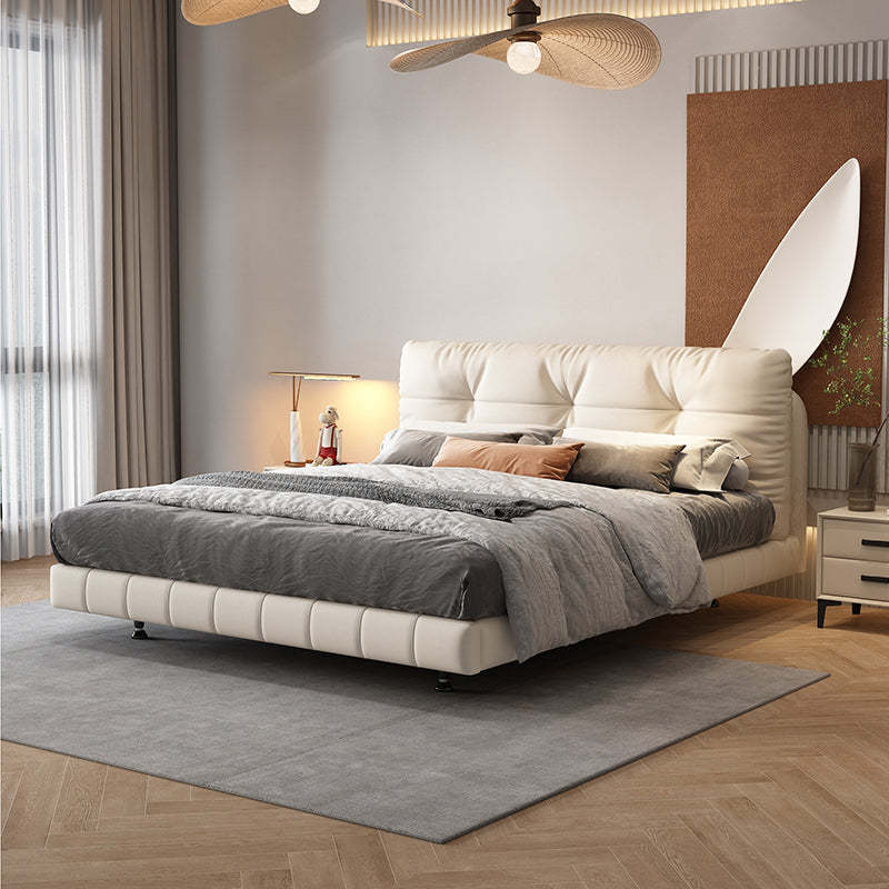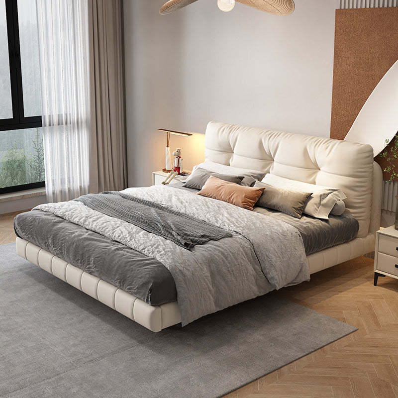 Floating Bed Cream Style Genuine Leather Bed